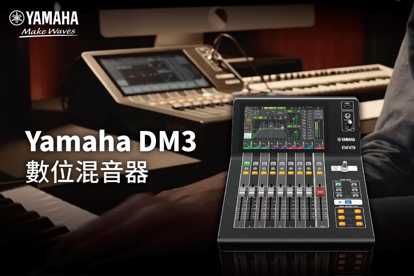DM3 是 Yamaha 在 2023 年推出的劃時代超緊湊數位混音器,以 9 吋觸控螢幕 + 單一 Touch & Turn 旋鈕為操作核心,將數位台的操作邏輯簡化到接近智慧型手機的體驗。在重量僅 6.5 公斤的機身中,塞進了 22 通道混音能力、96kHz 高解析度錄音、18×18 USB 介面和 DAW 控制器功能。