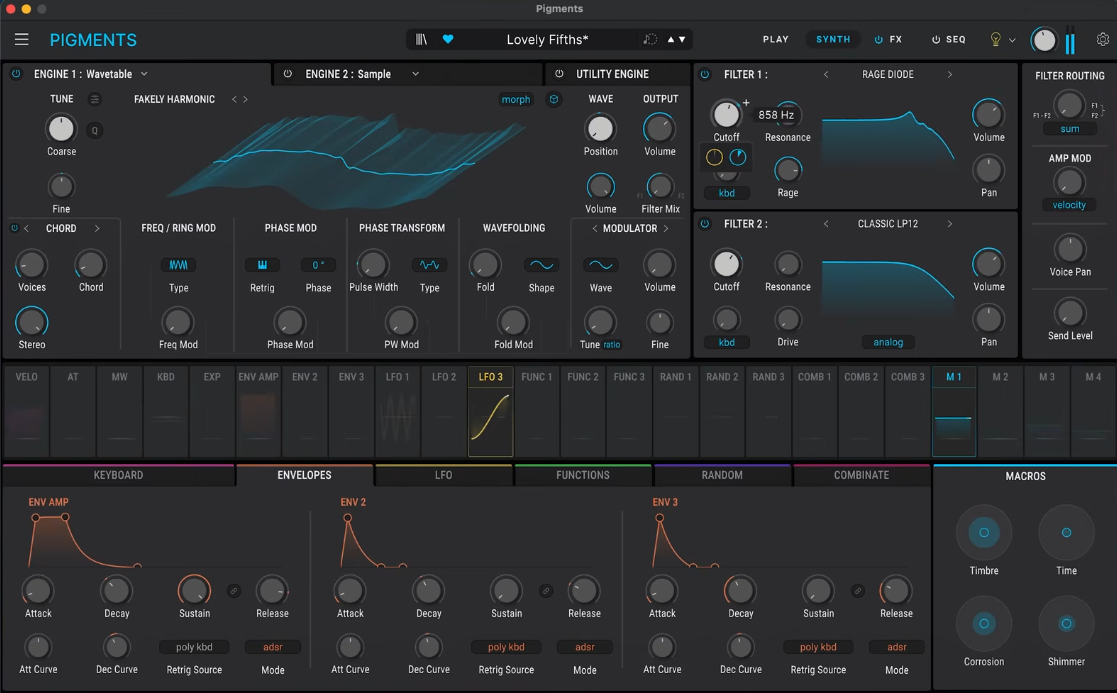 Pigments 7 改善了預設 Amp 包絡線行為,採用更平滑的 S 型曲線,減少 Click,並提供更乾淨、有力的瞬態,對銳利低頻設計特別明顯。