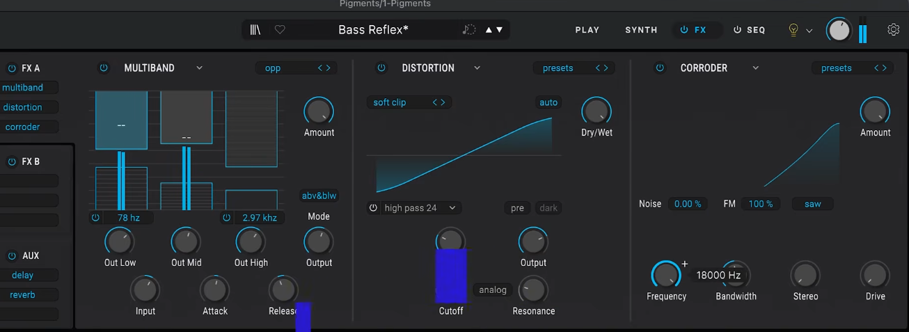 Reverb 是 Pigments 7 中最不尋常的濾波器之一。雖然基於殘響設計,但實際效果完全不同。Arturia 表示它能為聲音增加厚度、空間感與重量,非常適合現代低頻設計。