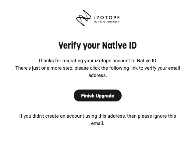 若你原本同時擁有 iZotope 與 Native ID 且使用相同 Email,帳號將會合併,你會使用 Native ID 的密碼登入。