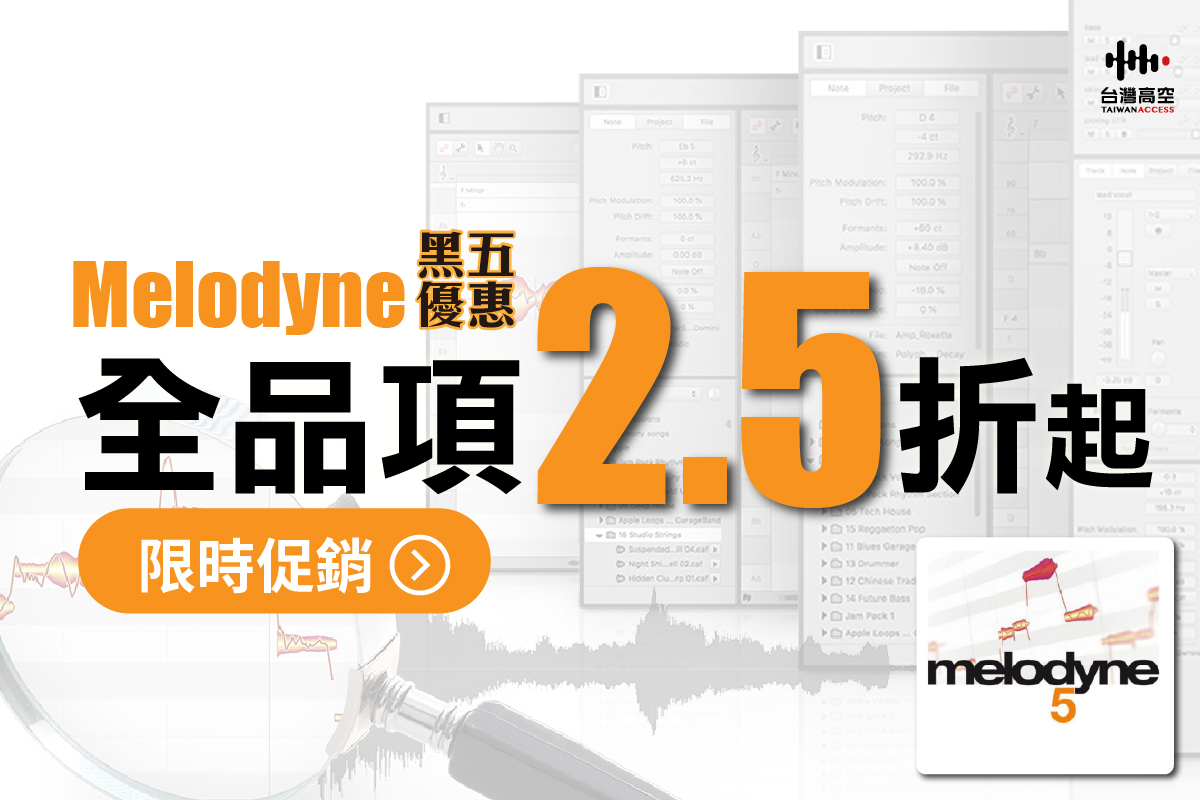現代製作必備的人聲音高修整 Plugin ,Melodyne 重磅優惠全品項 2.5 折起。