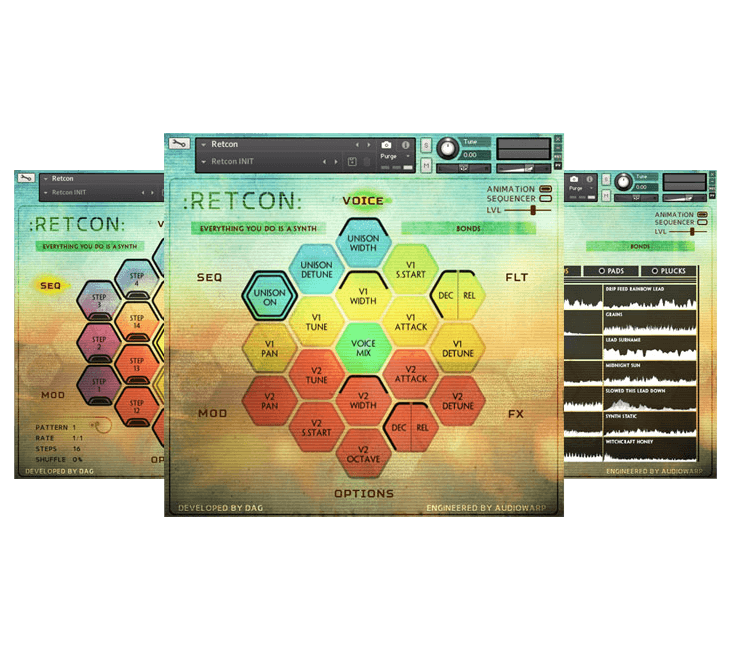 Retcon 是 BOCS 系列的自然進化版,將前三套音色庫融合,並加入大量全新內容,打造出靈感來自氛圍音樂的頂級聲音收藏。這不僅僅是另一組音色庫,而是一款獨具設計風格的虛擬樂器,採用色彩標示的 HEX 六角介面,讓你輕鬆掌握豐富的控制功能,特別為氛圍與合成音樂設計。