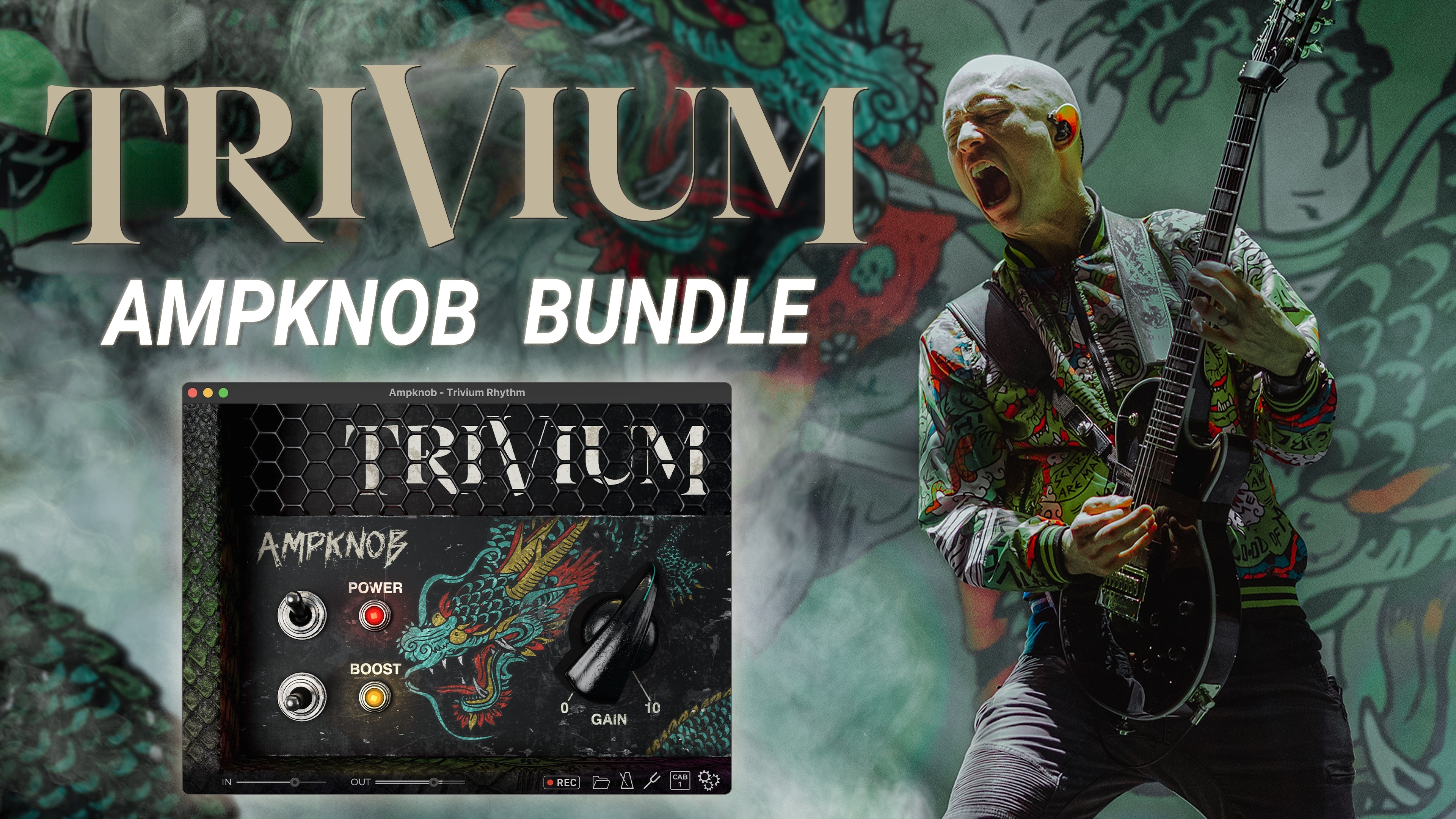 Ampknob - Trivium Rhythm 是一款專為金屬節奏吉他打造的音箱模擬器,具備廣泛的音色範圍與極簡操作介面。這顆 amp 是根據 Matt Heafy 與 Corey Beaulieu 的極致精準彈奏風格量身訂製,提供極緊實、清晰的低頻,能完美支撐疾速悶音而不混濁。