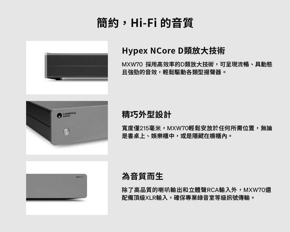 MXW70在倫敦設計,經過精心的設計,從一個小巧的機箱中提供出色的高保真擴音,可以適合現有的設置或構成一個微小的現代系統的基礎。