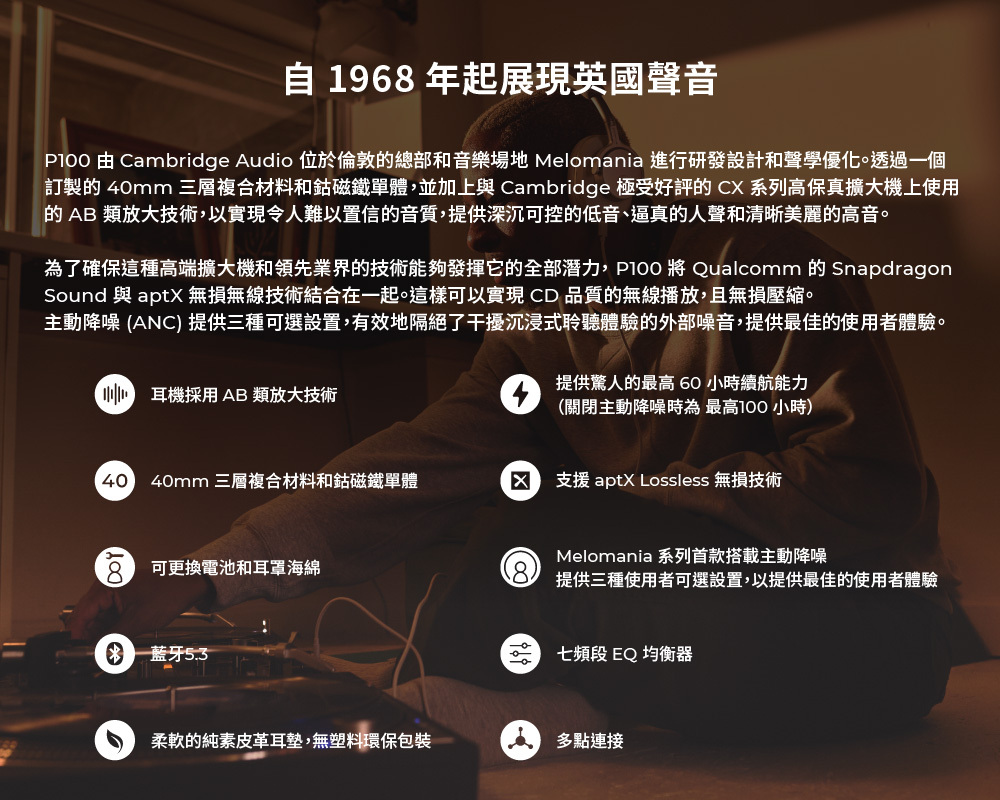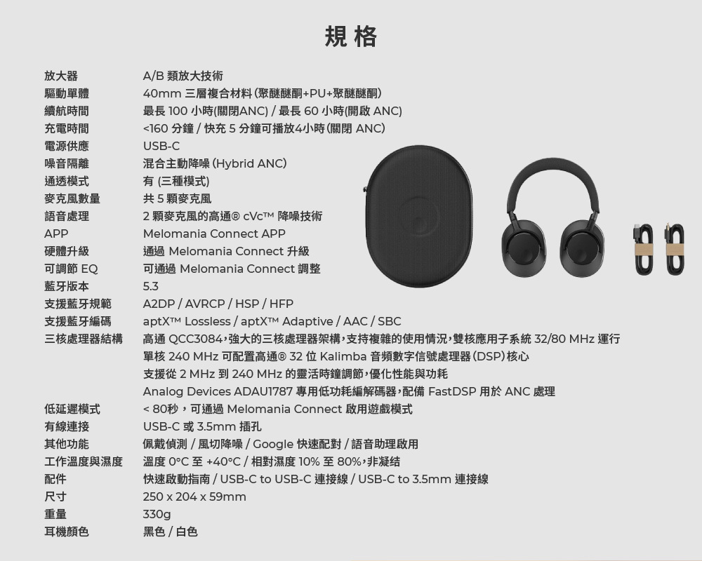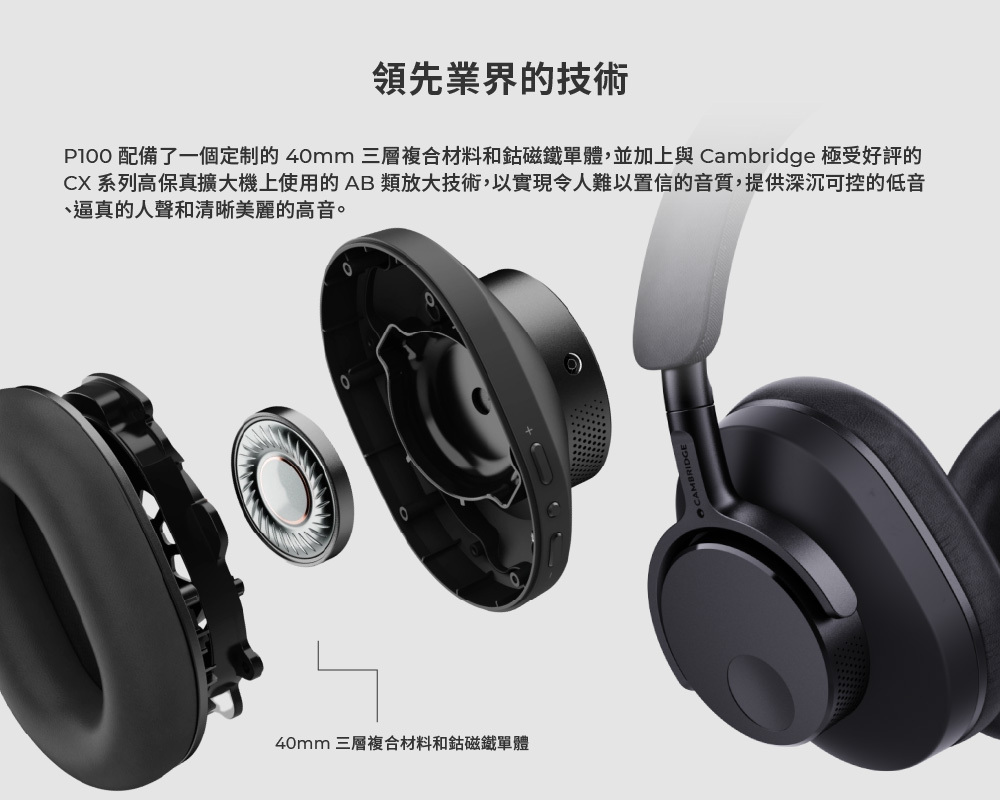 •為了驚人的音質而打造 – 使用定制的40mm振膜驅動器,採用A/B類放大技術
