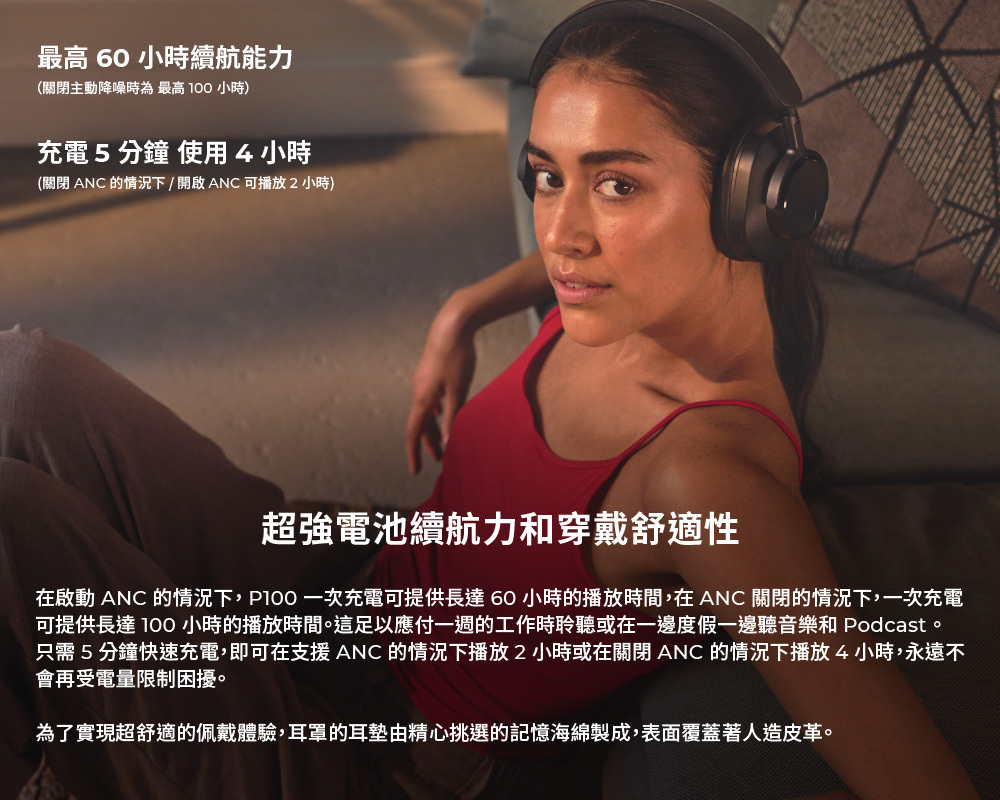•100小時電池壽命 – 充電五分鐘可播放長達四小時
