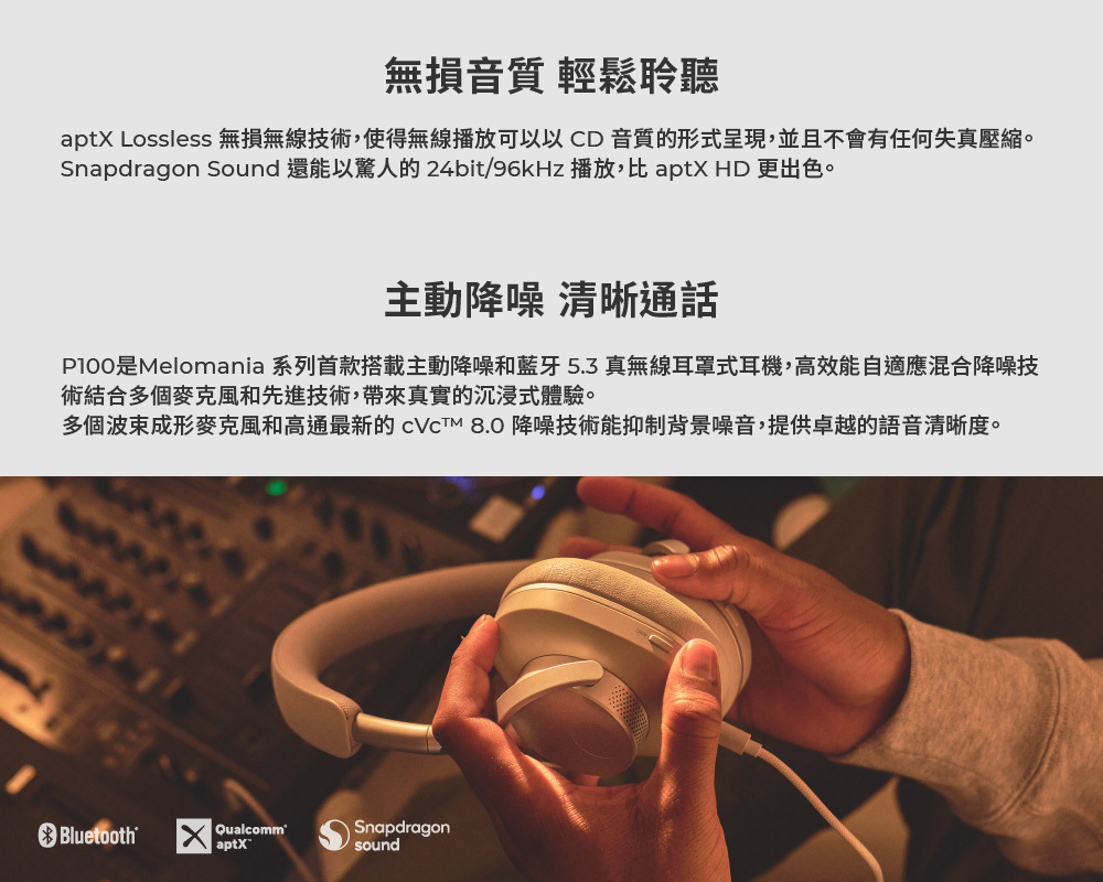 •專家工程設計 – 支援aptX™自適應音頻、aptX™無損音頻、Clear Voice Capture™回音消除、噪音抑制及藍牙5.3多點連接