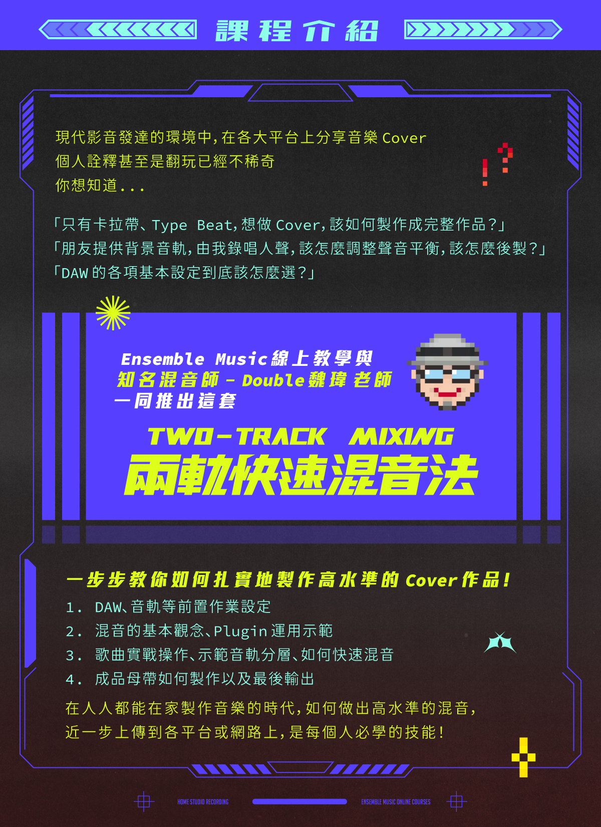 【揚聲堡音樂線上課程】大宅錄時代:Two-Track Mixing 兩軌快速混音法 - Double 魏瑋老師