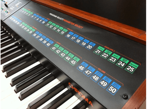 這台歷史悠久的合成器原由 ARP Instruments 研發,後由 CBS 接手生產。Rhodes Chroma 是第一批擁有 數位管理功能的模擬合成器 之一,具備 16 顆 VCO、多重音色(Multi-timbral)、聲音分層、鍵盤分區、速度感應 等劃時代的功能。