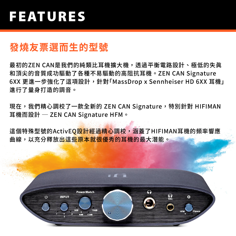 與市面上一般搭配筆電級電源供應器的耳擴不同,ZEN CAN Signature 搭配 iFi iPower2 電源供應器,採用 主動式噪音消除 II 技術(Active Noise Cancellation II),能有效消除所有 EMI 與 RFI 電磁干擾,確保乾淨、清晰的音質體驗。