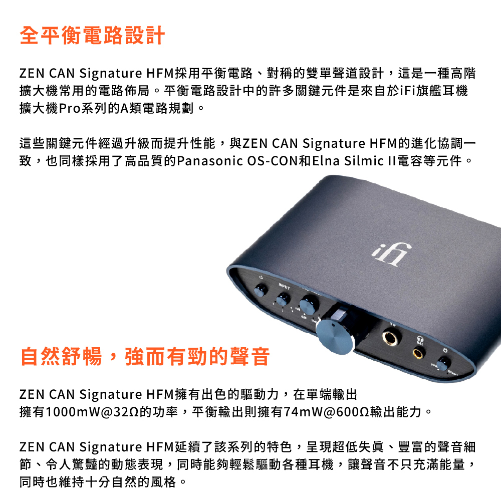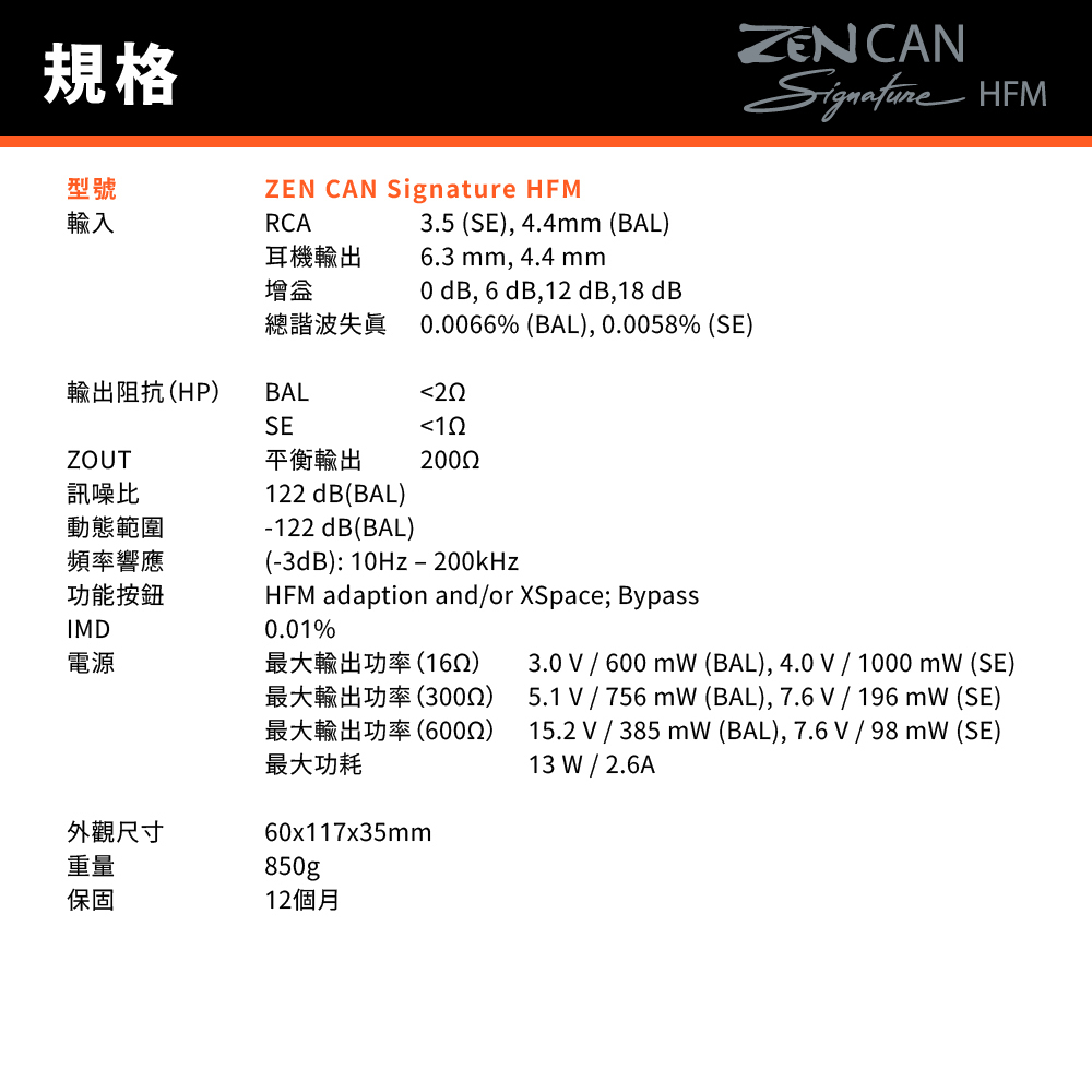 原始版本的 ZEN CAN 是一款全類比耳機擴大機,以其平衡電路設計、極低失真和卓越聲音表現,在推動高負載耳機方面表現出色。ZEN CAN Signature 在此基礎上更進一步,配備了強化電路與發燒級元件。其平衡、對稱的雙單聲道電路可透過平衡輸出提供最高 1,890mW(11.0V)至 64 歐姆負載,或超過 15V 電壓至 600 歐姆或更高負載。