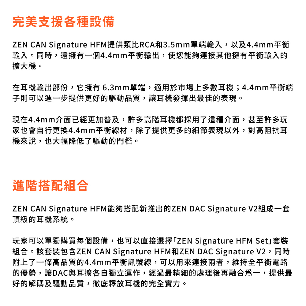 無論是筆電、手機或 DAC,只需將它們接上 ZEN CAN Signature,再插入耳機,就能體驗到高達 50 倍功率提升,真正聽見以往錯過的聲音細節。不僅如此,ZEN CAN Signature 更帶來溫暖且卓越的聲音表現,這得益於其源自旗艦 Pro iCAN 耳擴的 Class A 雙單聲道離散式平衡電路設計。
