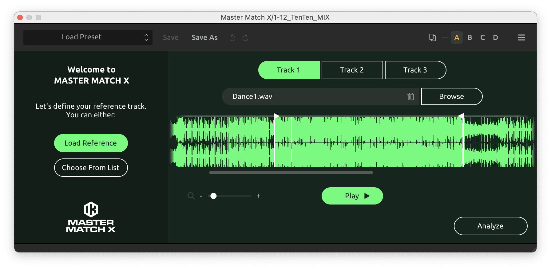 使用 learn track 按鈕分析您的軌道,播放軌道中最響亮的部分以獲得更好的效果,然後根據需要立即按下 MATCH。就這樣!您的軌道已處理。