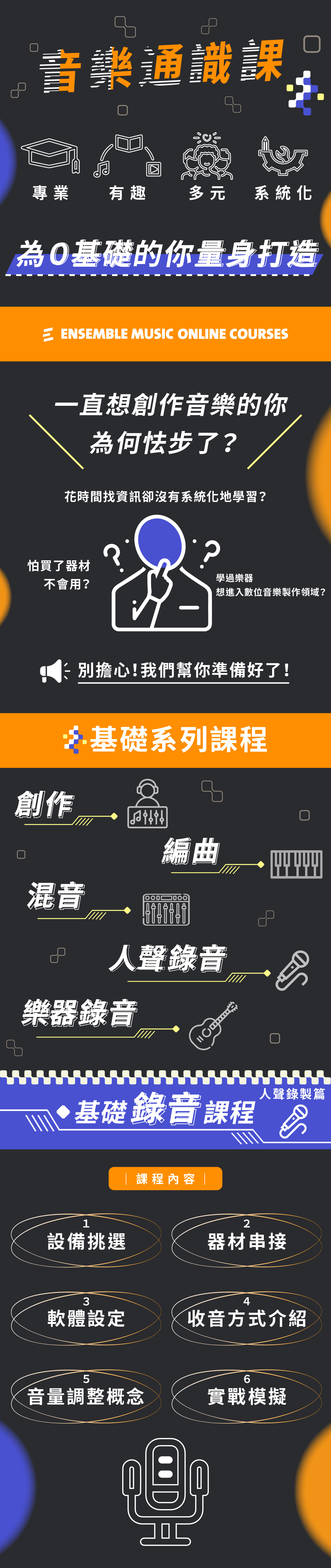 ※此系列課程為進階課程的基礎精華濃縮版,若購買過揚聲堡線上音樂教學相關錄音課程,可斟酌考慮是否購買本課程,或直接購買相關進階課程。