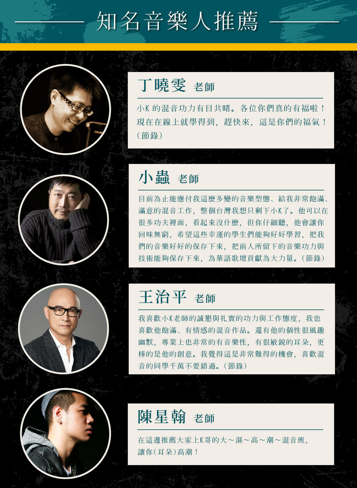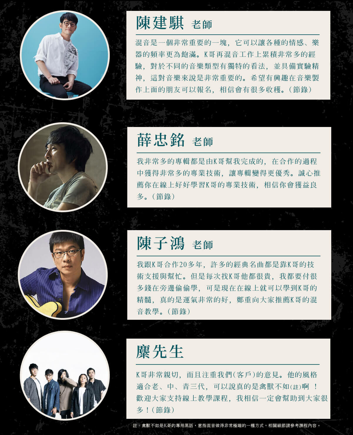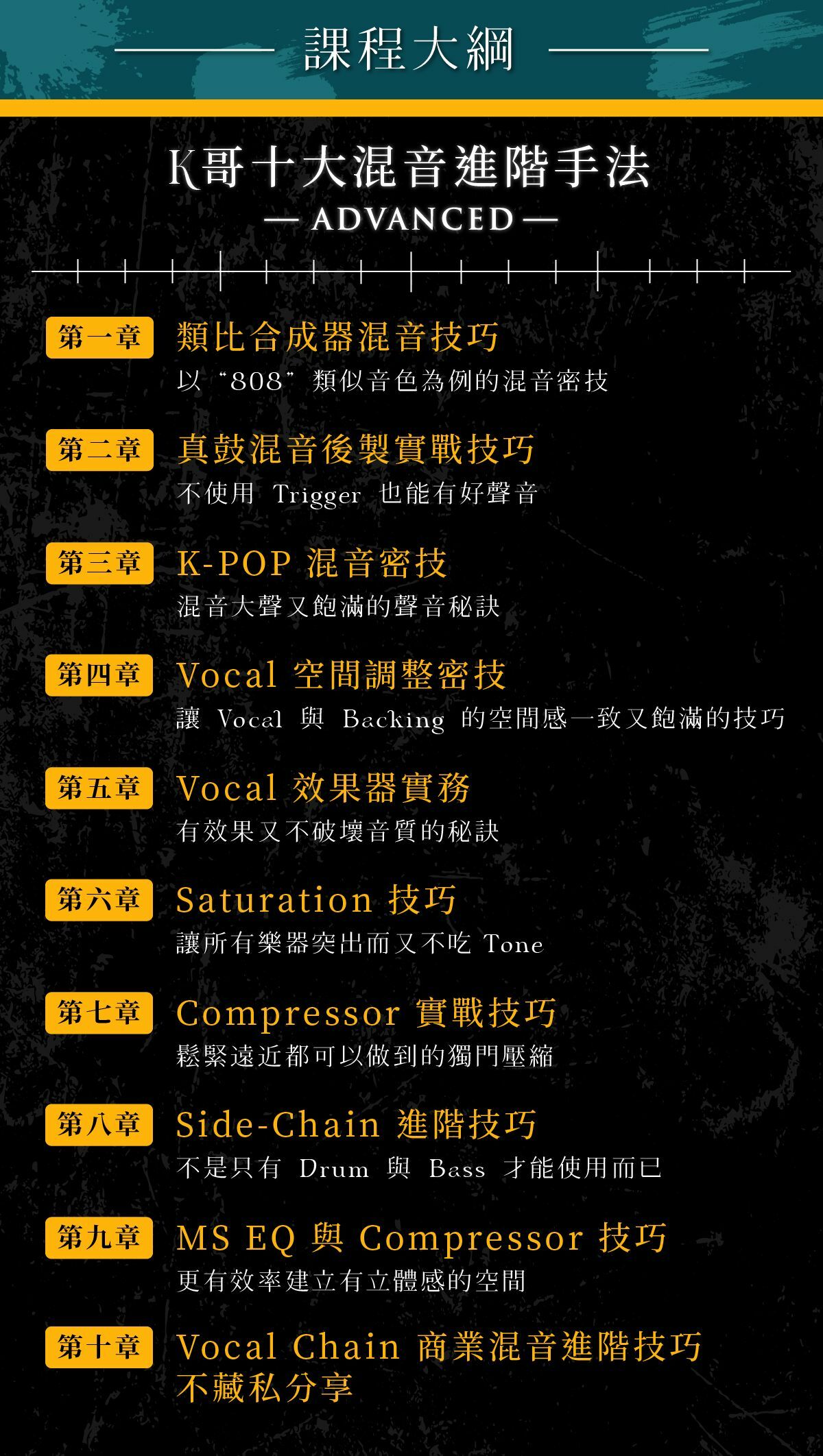 ※第一季課程迴響熱烈、好評不斷!歷經一年多籌備醞釀,K哥將在第二季進階課程中帶來全新混音手法!