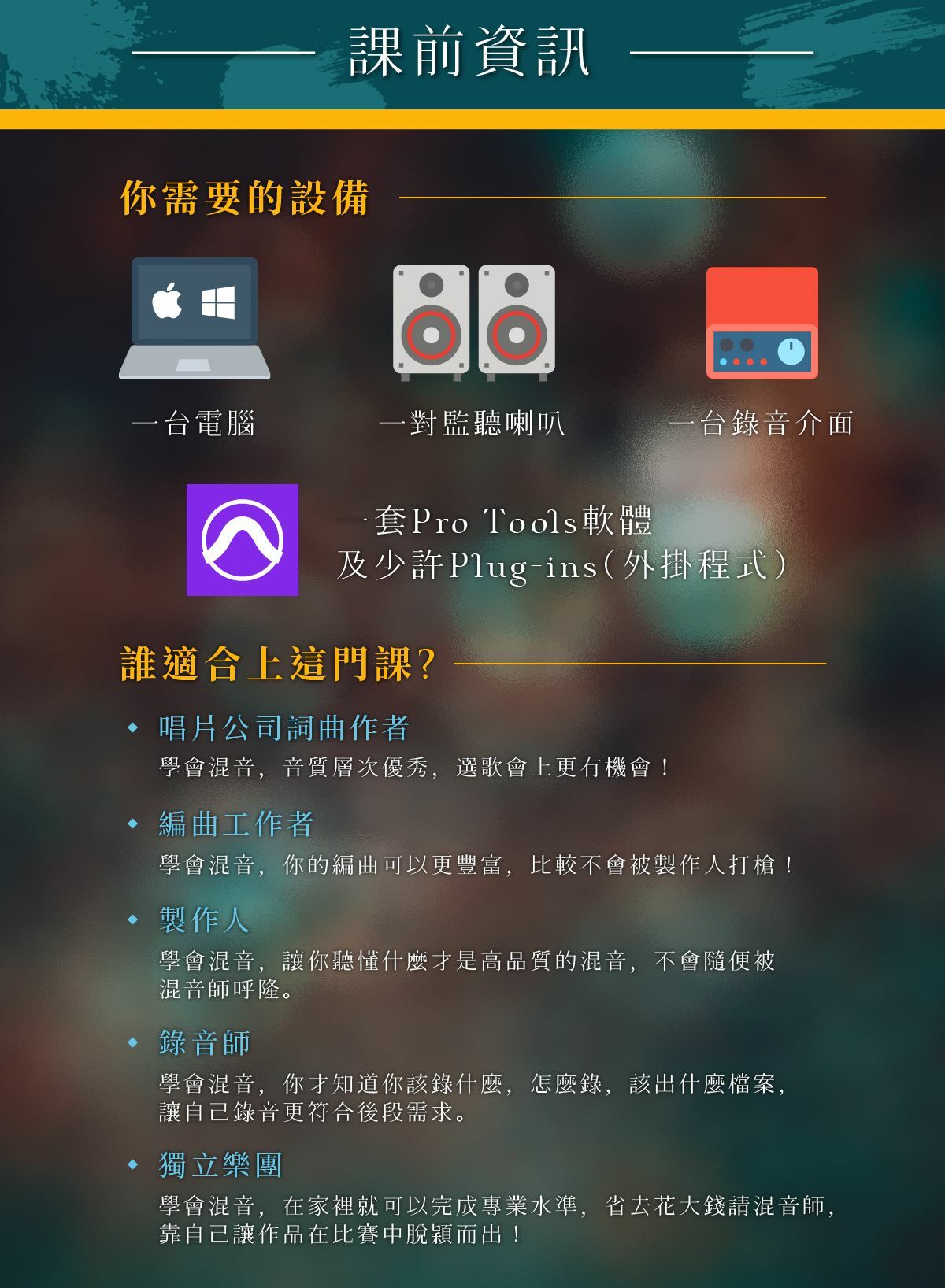 ※金曲混音大師的混音實務課程:全新進階內容 熱烈授課中!
