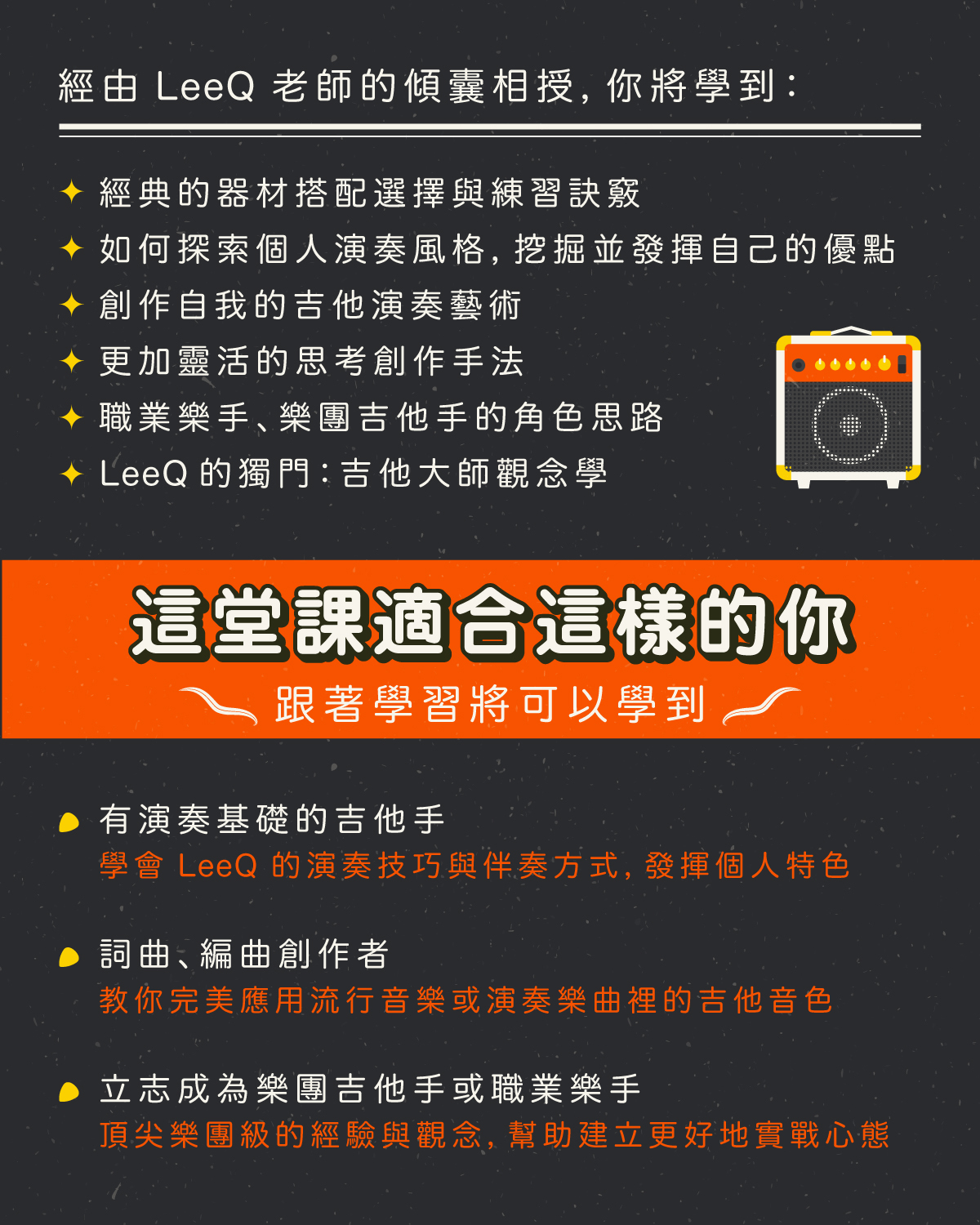 ※讓華語流行樂壇知名吉他手 LeeQ 老師 教你玩音樂!