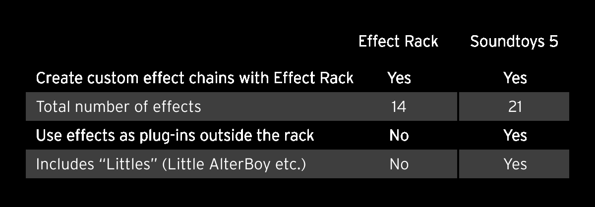 Soundtoys 5 vs Effect Rack 5