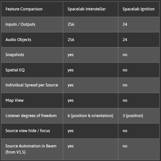 Spacelab Interstellar vs. Spacelab Ignition 功能比較