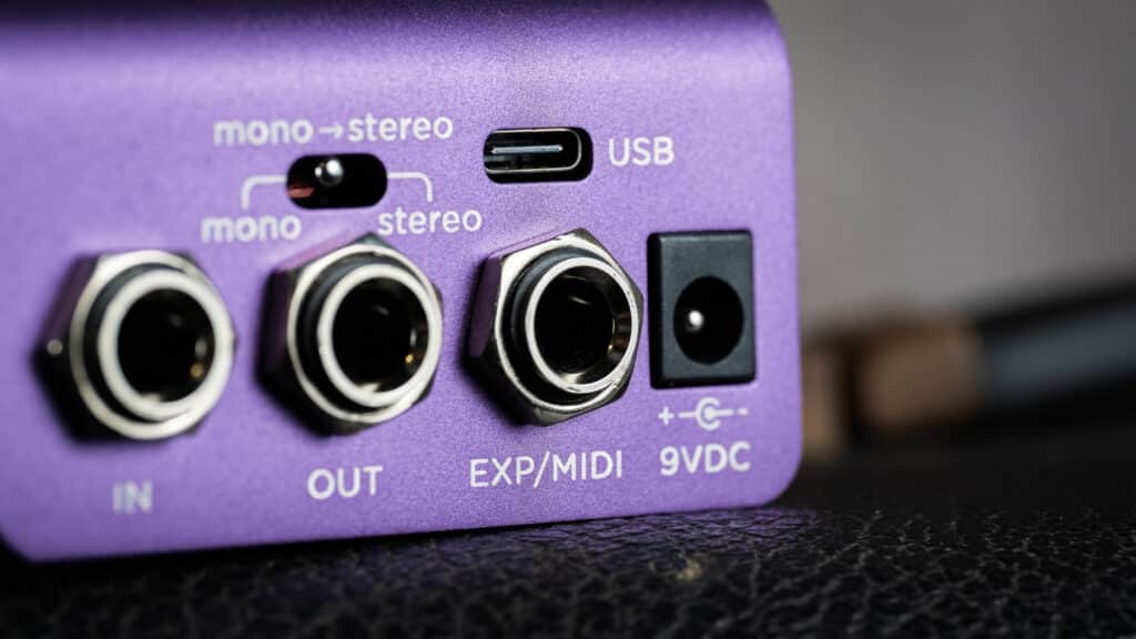 具有300個可用預設位置的全面MIDI實現確保UltraViolet適用於您的MIDI配置。除了TRS MIDI,還有一個USB-C接孔,可透過電腦以MIDI控制效果器或進行韌體更新。無需MIDI的控制,可以連接一個表情踏板,以控制任何旋鈕的任何方向(默認情況下,表達踏板控制速度)。或者連接一個選配的外部開關,以進行拍奏節奏或收藏最愛。