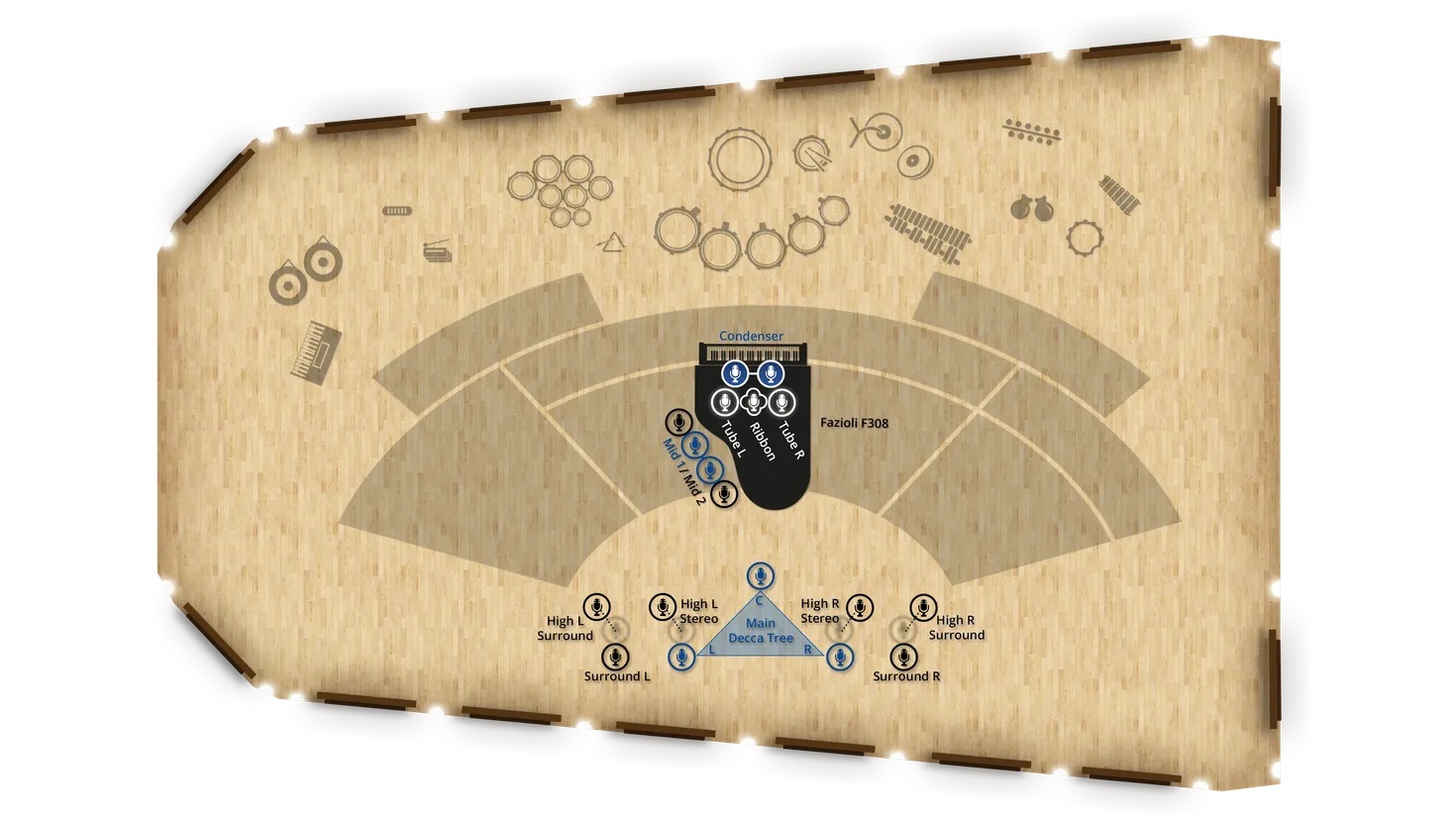 宏偉、更加宏偉——F308:作為世界上最大型的鋼琴之一,Fazioli F308 是 Fazioli 備受讚譽的音樂會平台鋼琴系列的巔峰之作,同時也是 Vienna Synchron Stage 專屬鋼琴珍藏中的耀眼明星。這台鋼琴專為大型空間設計,在我們寬敞的 540 平方公尺「A 廳」中找到了完美歸屬,這裡卓越的音場聲學更進一步放大了其壯闊音色的張力。