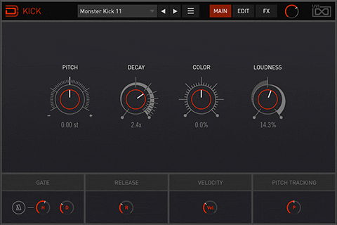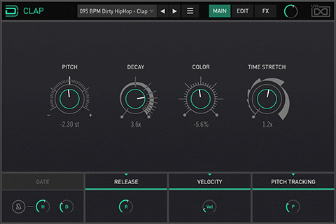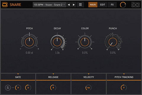 將低音鼓聲分解為主體和音調部分,讓您可以選擇每個組件的個別聲音,獨立調整它們的音高、增益、聲像、按鍵跟蹤以及低通和高通濾波器。您還可以更改音調的相位,使其完美對齊,甚至延長音調部分的持續時間。使用音調放大編輯器可以繪制自己的自定義包絡線,然後根據需要進行平滑處理。
