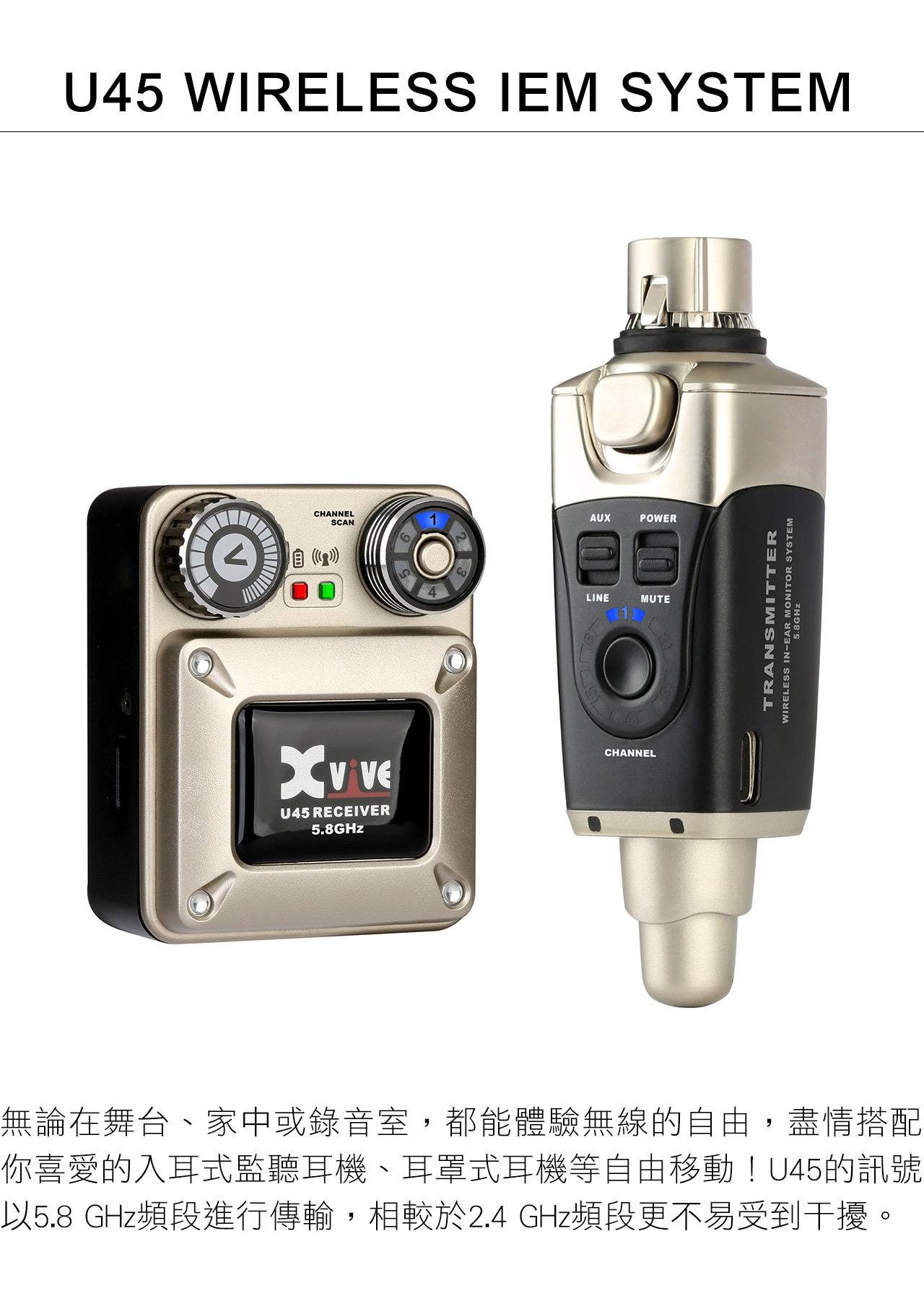 ● 內含 U45 無線監聽系統 + T9 專業級雙單體監聽耳機,以及 CU4 硬殼收納盒