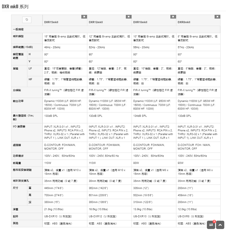 通用開關電源:DXR mkII 系列採用高效開關電源,展現優異效能。該電源同時適用全球多電壓設計。