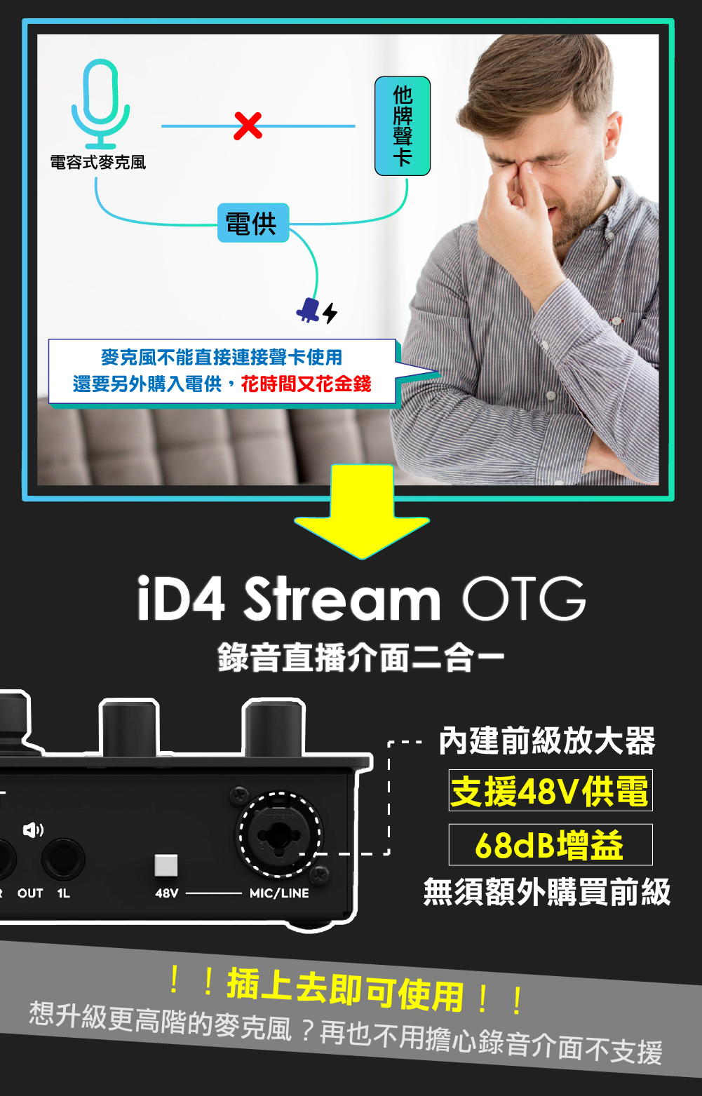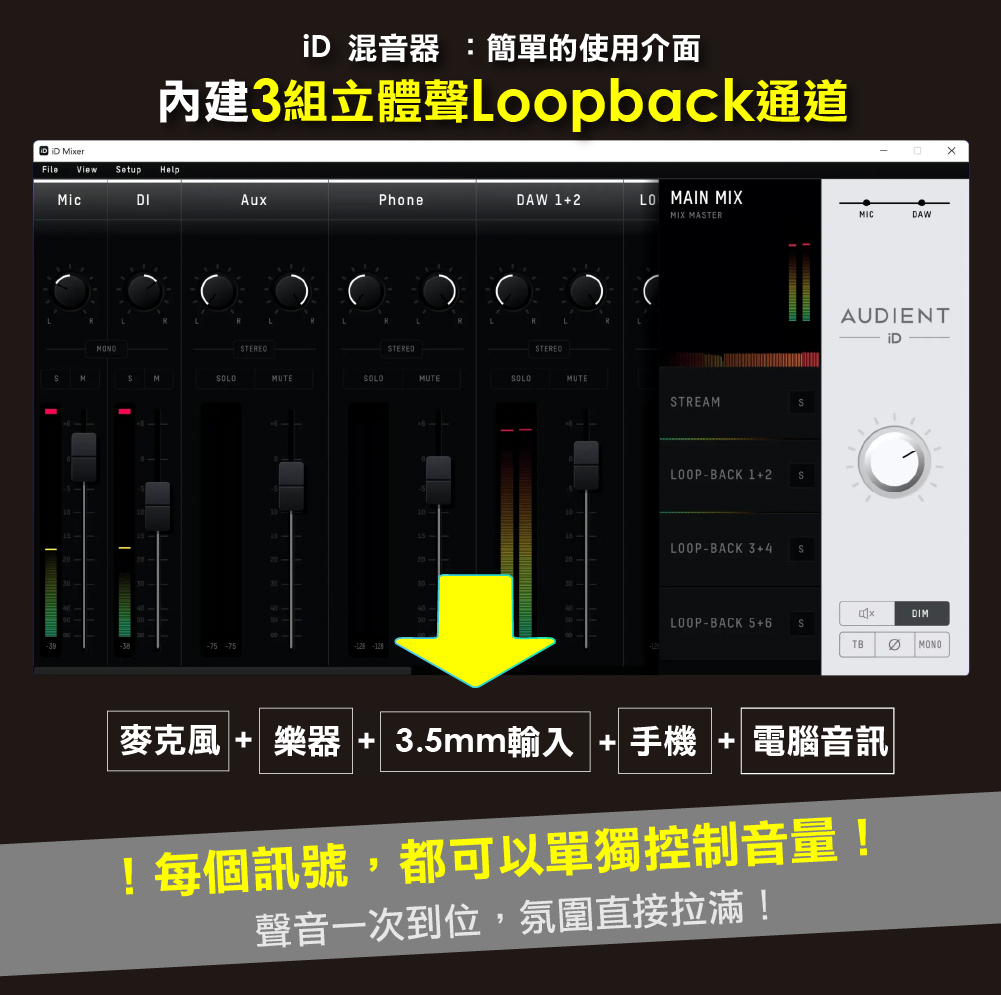 2-in/2-out USB-C Audio Interface with 1 Microphone Preamp, 1 JFET DI, Bus Power, 2 Headphone Outputs, and Software Bundle - Mac/PC/iOS
