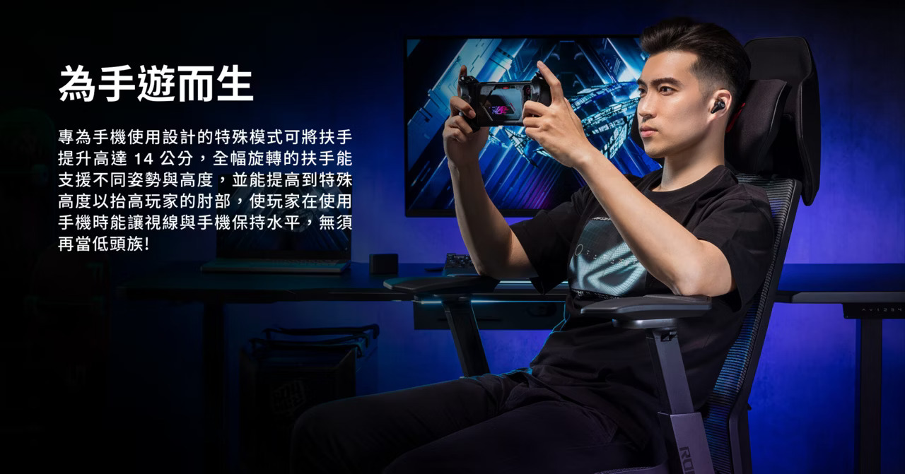 •專為遊戲而生:特化扶手帶給手遊玩家最理想高度, 並提供360°全幅旋轉功能