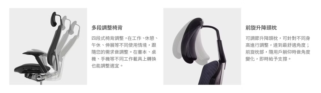 •四段式椅背傾仰調整,工作、休憩、伸展,一張滿足