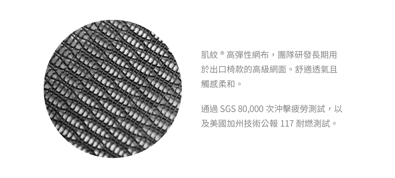 網布通過 SGS 80,000 次衝擊測試,以及美國加州技術公報 117 耐燃測試