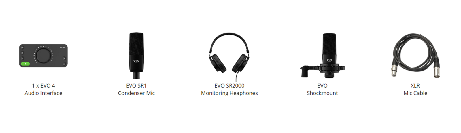 新手入門CP值最高的錄音套組!EVO SRB新手錄音套組從錄音介面、麥克風、耳機到錄音介面讓你一次到位!快速開始製作音樂!