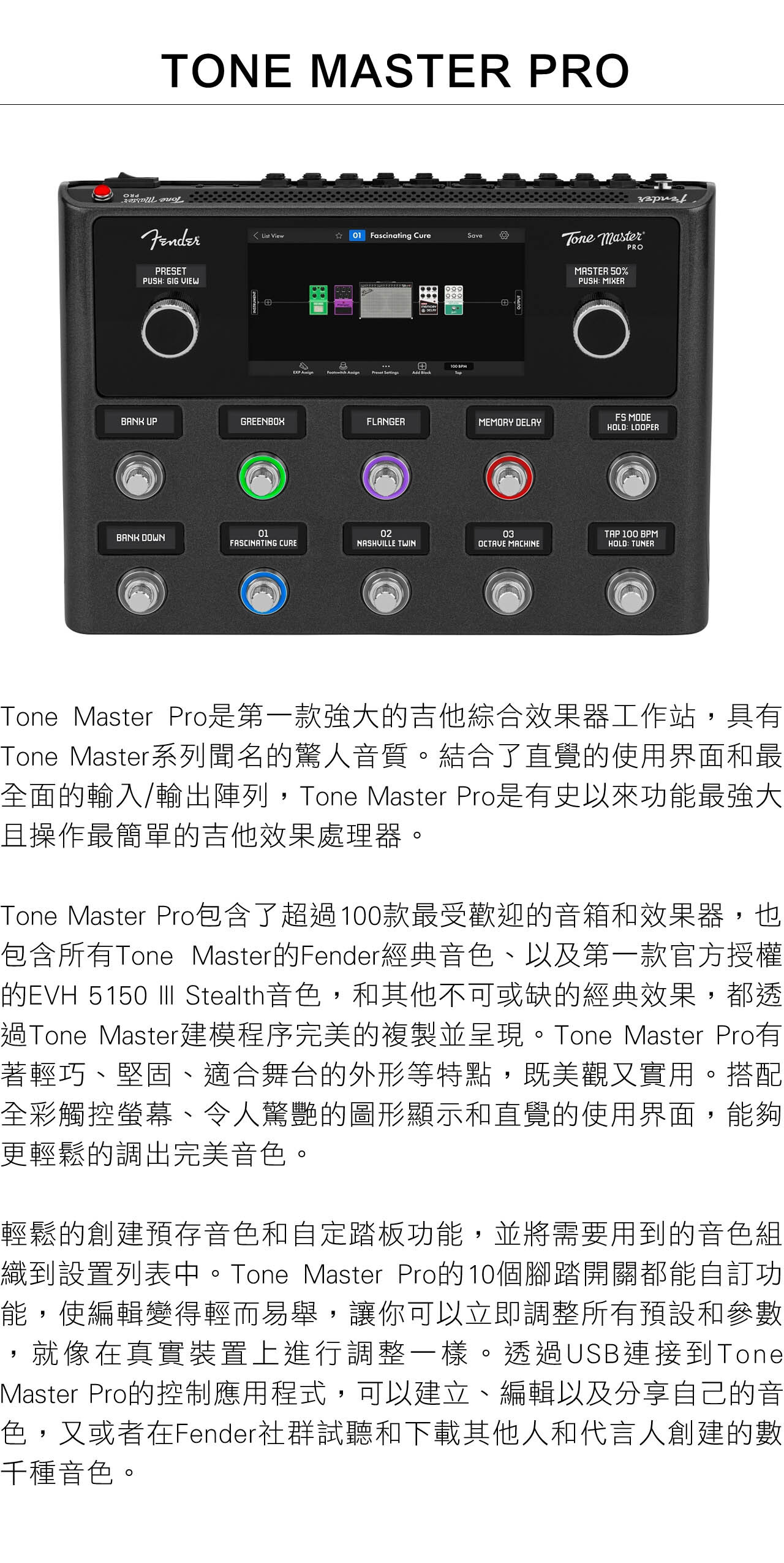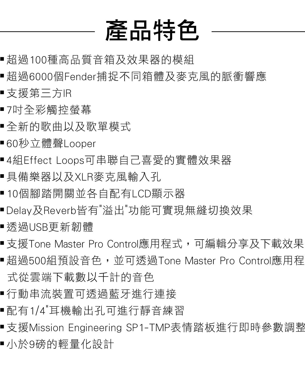 ● 支援Tone Master Pro Control應用程式,可編輯分享及下載效果