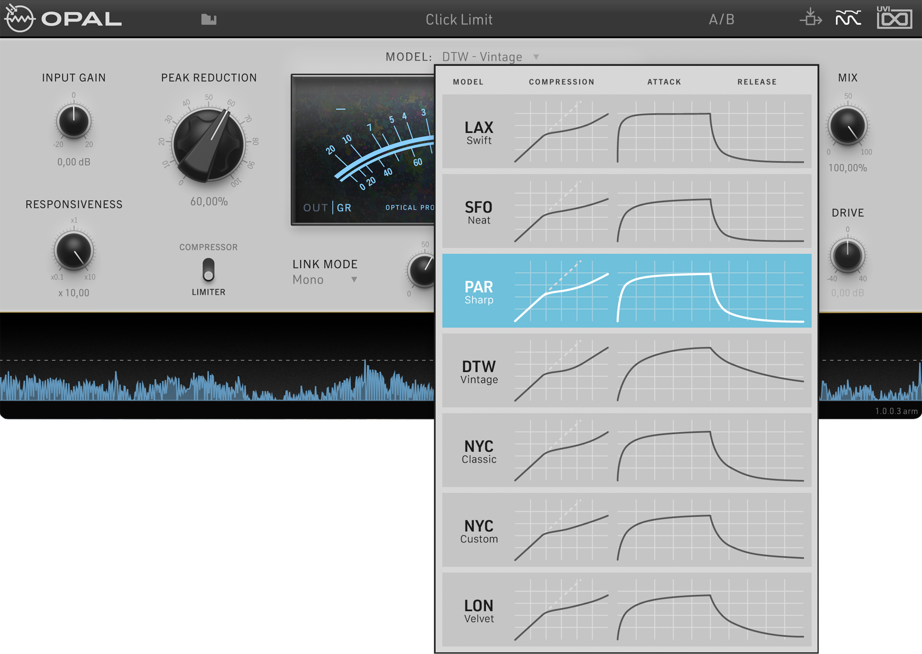 Opal 是一款突破性的 Optical 壓縮器模擬工具,帶您踏上聲音之旅。