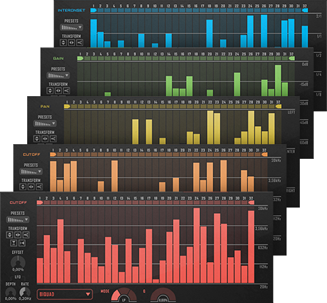 每個延遲線都配備了時間、增益、聲像和兩個多效果的調制編輯器。