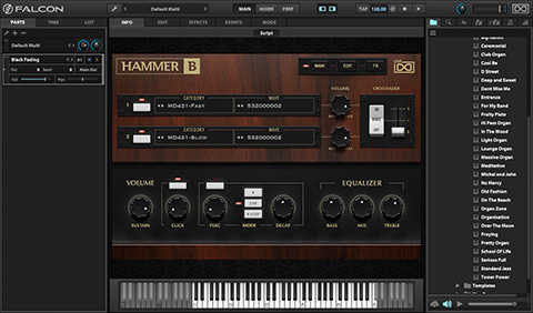 使用 Falcon 或 UVI 工作站,您可以輕鬆擴展和提升您的管風琴體驗。例如,您還可以將上鍵盤設置為演奏 Super VX 獨奏,將下鍵盤設置為 Hammer B,然後使用踏板從 GT2500 中掃入聲音。配置簡單直觀,所有控件都支持 MIDI-learn。
