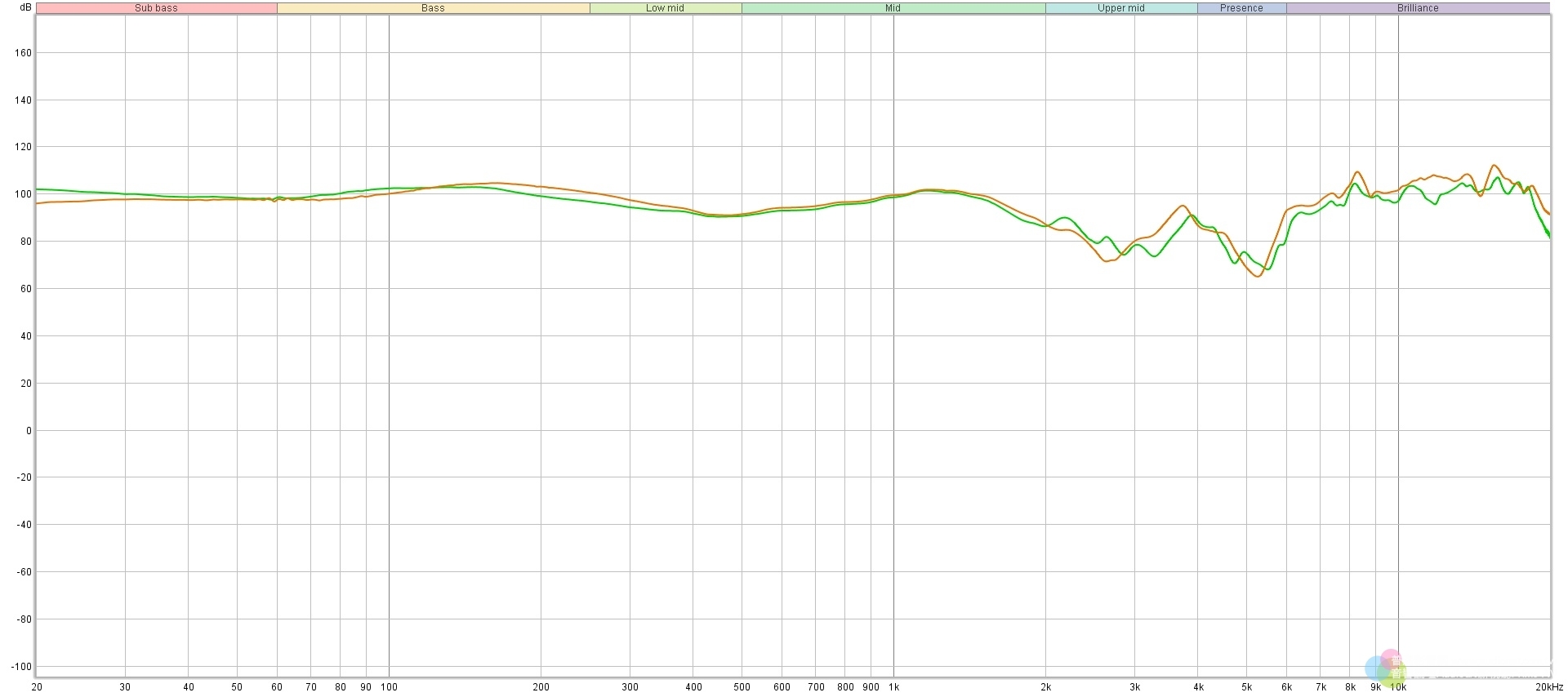 筆者一看見Austrian Audio Hi-X55的原始頻響曲線圖時,便不禁驚嘆,這不是完美,那什麼才是?在這個圖中可以看到,這副耳機左右聲道的疊合率相當高,以一副需連接導線的耳機來說,這是非常厲害的,也顯現出AKG大廠的調音功力了得。