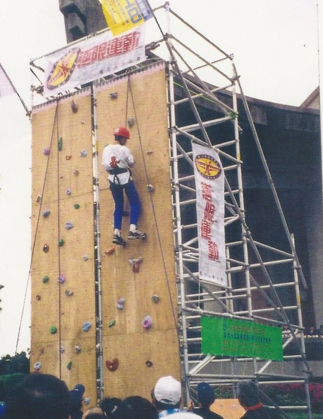攀岩餐廳在國父紀念館的推廣活動,需要輕便容易運輸,容易組裝拆卸 (又不須要工具),可多次使用的高塔做為攀岩板的支撐。