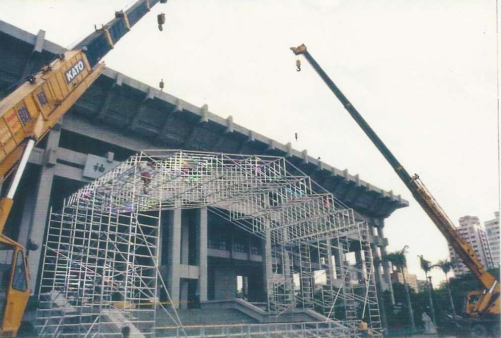 高雄市中正文化中心大堂整修,歷時約2年,所有藝文節目必須移至戶外,需要舞臺燈光架,Upright 愛爾蘭公司設計製造。