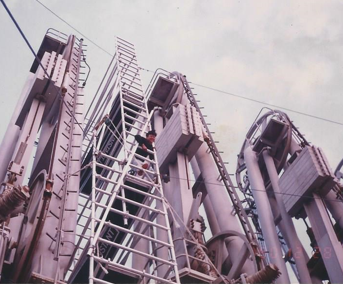 高雄永安中油公司液態天然瓦斯接收站,每次接收液態天然瓦斯後,要做維護工作,要用17米高的工作塔讓維護者接近工作點,因接收站地形與設備尺寸限制,工作塔於高10米處,要由寬1.26米縮為0.61米,鷹架越高越難搭,永安風很大,任務艱鉅危險。