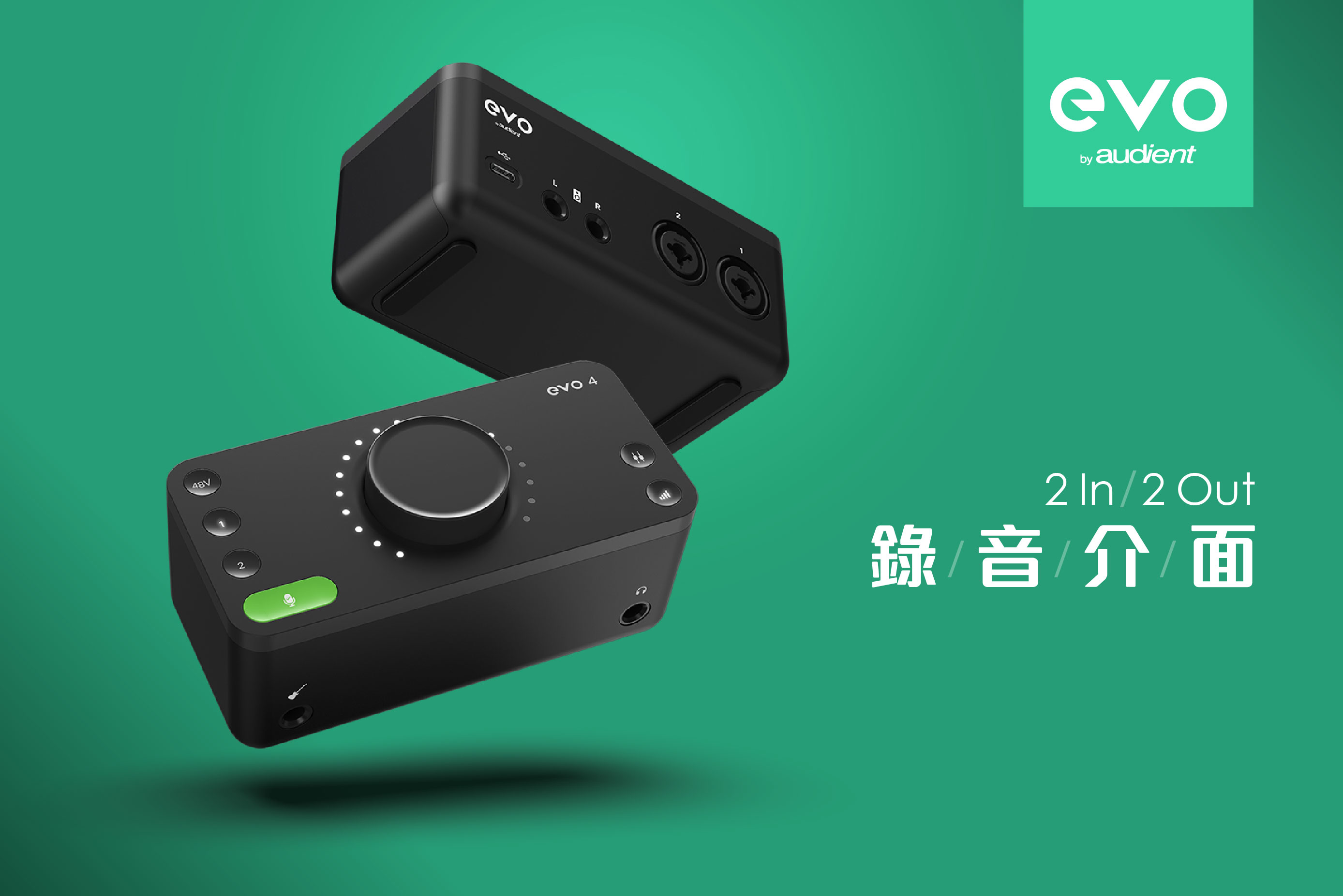 Audient最新推出的EVO 4錄音介面體積小易攜帶、操作直觀易上手、Smartgain智能增益模式非常方便、支援MacOS,iOS和Windows,是臺物超所值的錄音介面。
