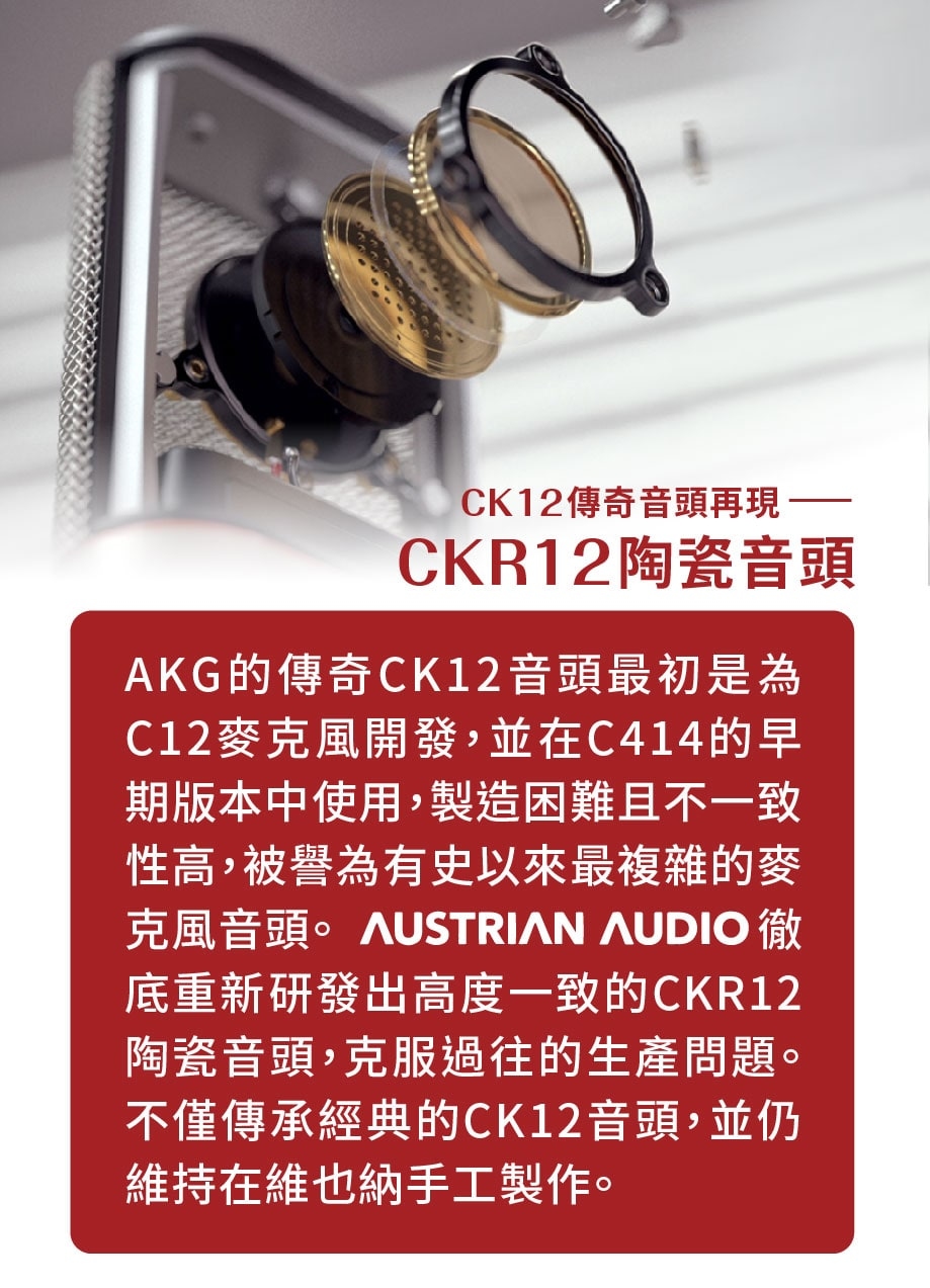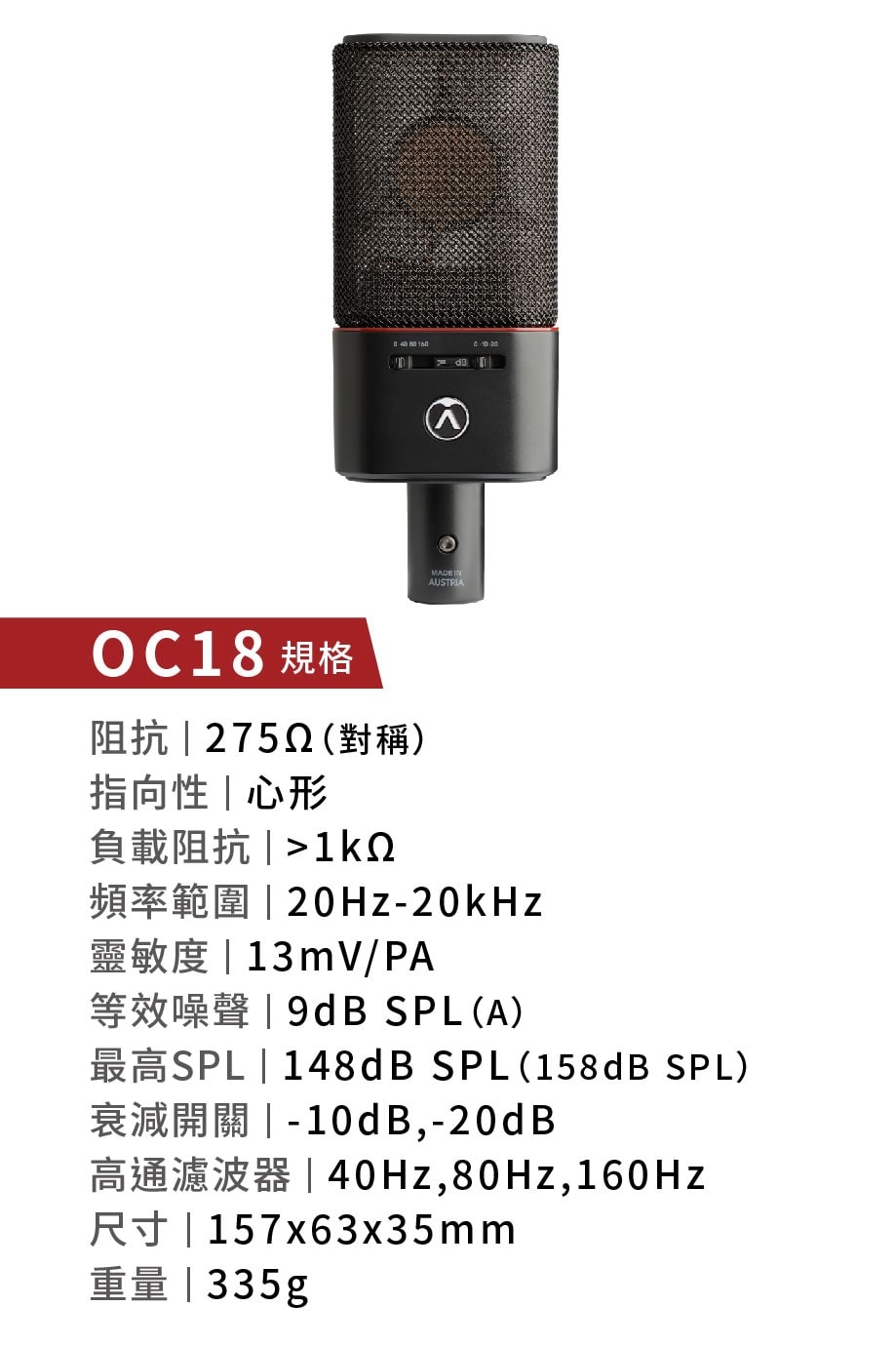 OC18大振膜電容式麥克風,單振膜心形指向,CKR12陶瓷音頭。