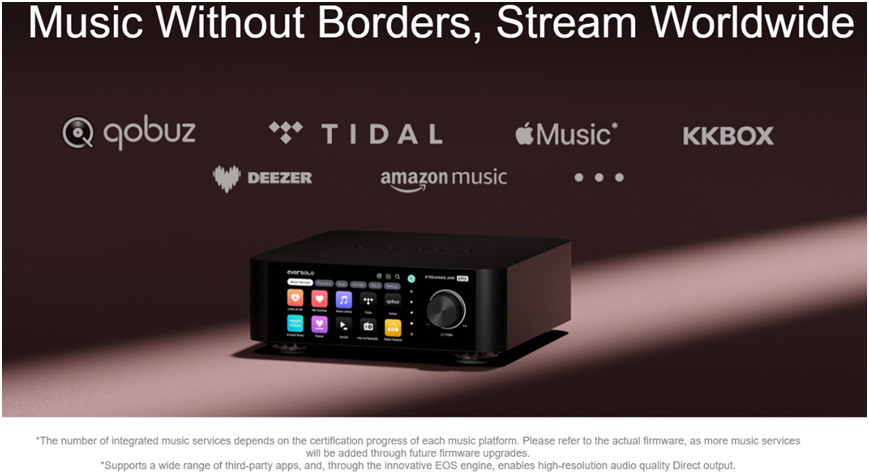 *支援多款第三方 App,搭配 Eversolo EOS 音訊引擎,提供高解析直通輸出音質。