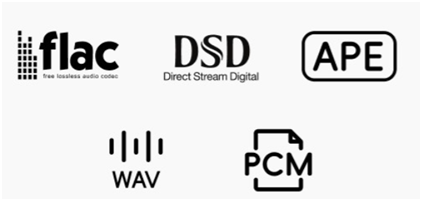支援多種高解析音訊格式,包括 DSD、PCM、FLAC、APE 及 WAV,最高相容至 DSD512 與 PCM 768kHz/32Bit。帶來媲美錄音室母帶等級的高音質重現。