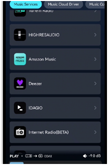 TIDAL、Qobuz、IDAGIO、Amazon Music、TuneIn Radio、Presto Music、KKBOX、Radio Paradise、Deezer 等,