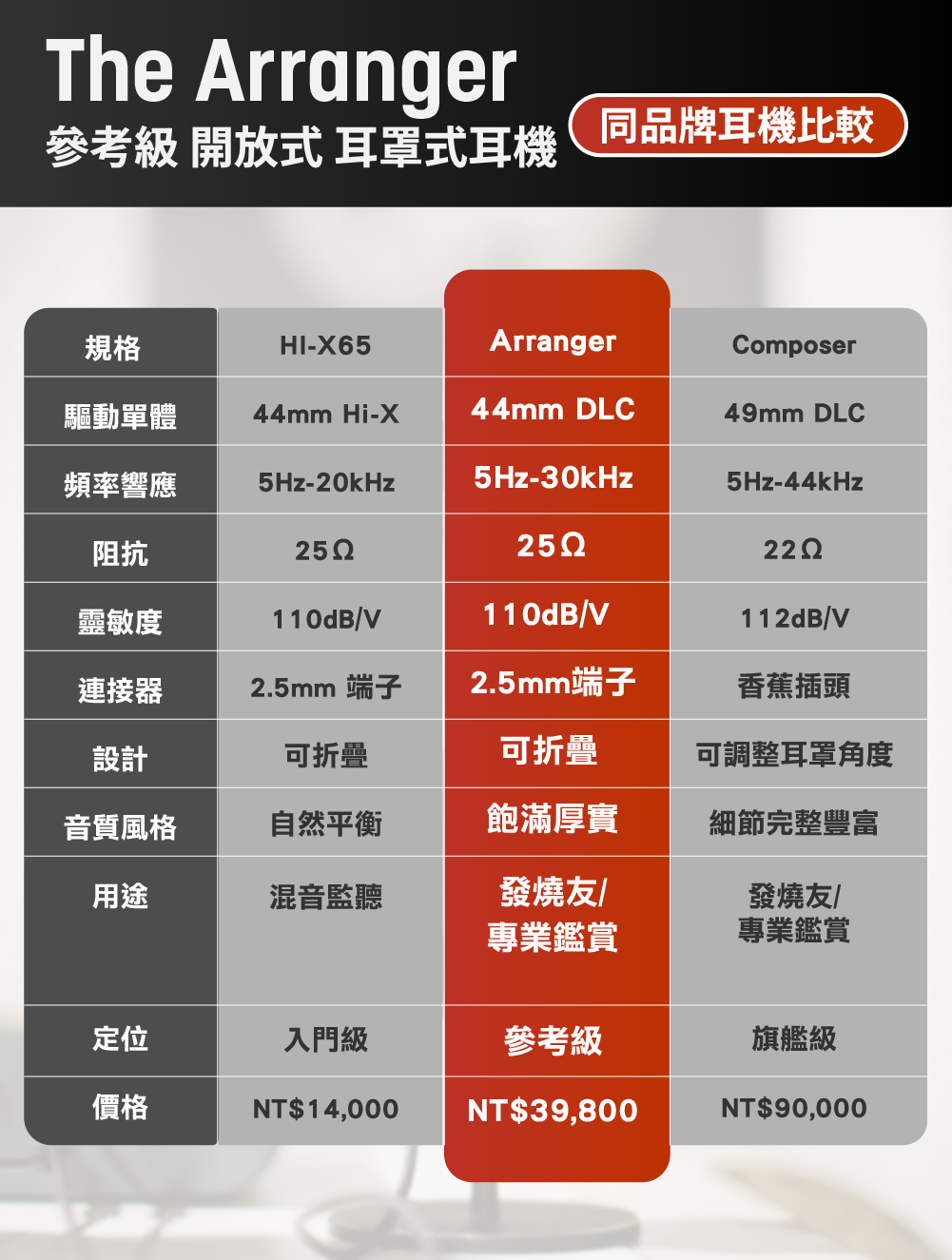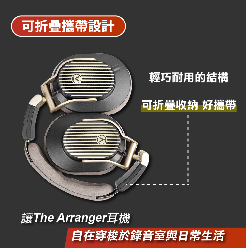 The Arranger 是一款高端開放式參考耳機,結合發燒級音質與耐用、可攜的設計。其 44 mm 高精度單體帶來低失真、深沉低頻與寬廣自然的音場,精準呈現每一個細節。舒適、可折疊、低阻抗且 100% 可維修,無論在家或外出使用,都是值得長期信賴的聲音參考。
