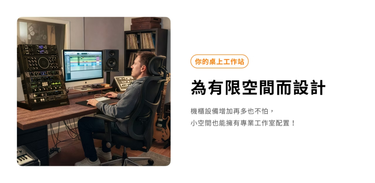 讓音樂工作站快速進入狀態!桌上配置清楚,使用更順暢。