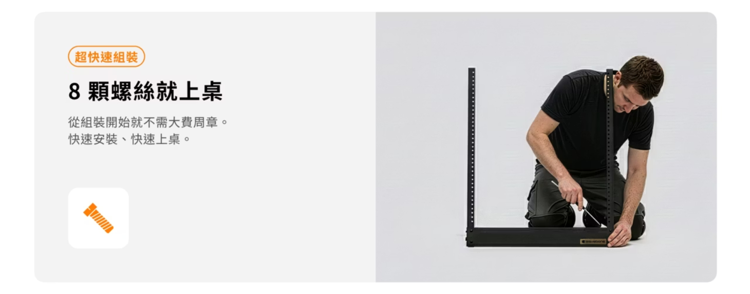 僅需簡單組裝即可放上桌使用,集中收納設備、維持良好散熱,