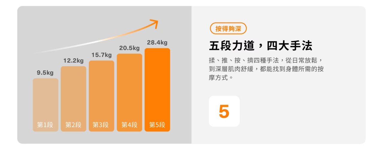 ·五段力道 × 多種按摩手法